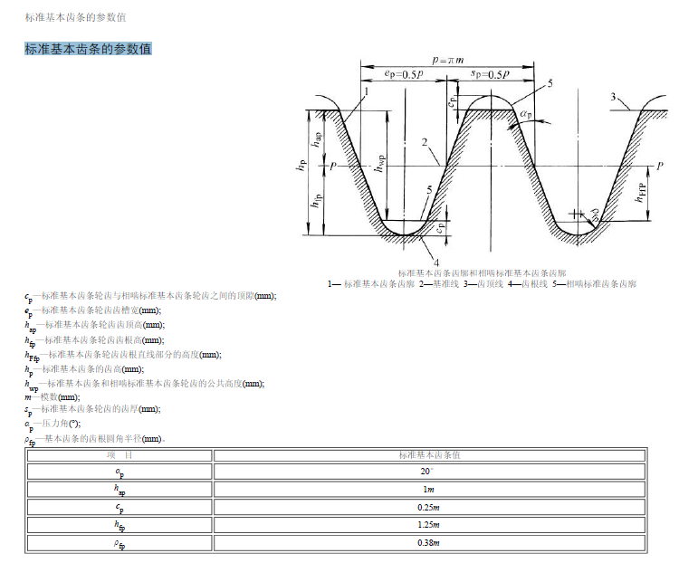 標準基本齒條參數值和齒條的(畫法)